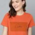 Mast Harbour Women Orange Black Typography Print Pure Cotton Tshirt