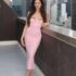 TRENBEE Floral Applique Satin Bodycon Maxi Dress